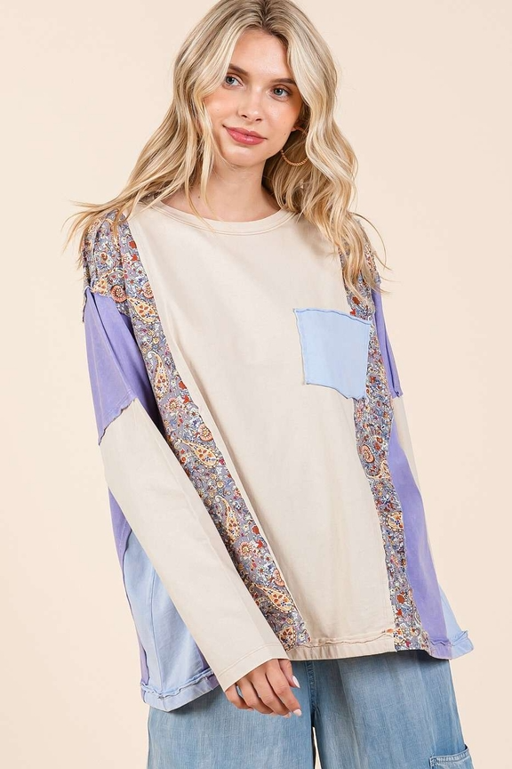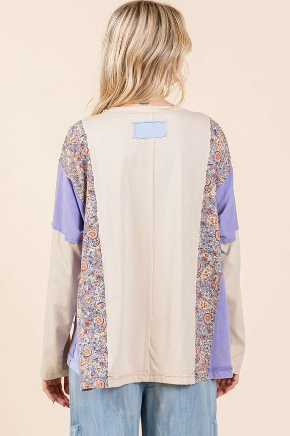 Paisley Patchwork Cut Edge Long Sleeve Top